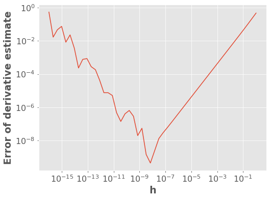 abs_error = lambda h: np.abs(dfdx_estimate(h) - dfdx_true)